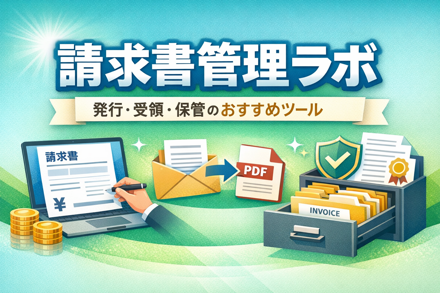 このサイトでは、請求書業務を発行(作成・送付)/受領(集約・処理)/保管(電帳法・インボイス)に分けて整理し、あなたの状況に合う選び方と、おすすめツールを分かりやすくまとめています。